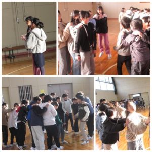 最後は、学年レクリエーションのようすです。3学期から毎週木曜日の朝の時間に、実行委員の子を中心にみんなで楽しめるレクリエーションを行っています。このような一つのことを学年のみんなで行う活動は、野外活動以来です。この時間を大切にしたいですね。