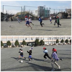 一年で寒さが最も厳しい頃とされる二十四節気の「大寒」を迎えました。天気予報を見ると、寒気が下りてきて寒さがより厳しくなると予報されていますが、今日は心地よい日差しが届き、校庭では元気に体を動かす子どもたちを見ることができました。ひまわり・なかよし・えがおの子たちは、なわとびに挑戦したり、級友と遊具で遊んだりと思い思いに体を動かしていました。また、2年生はサッカーに取り組んでいます。今日は小さなゴールを設置し、ゲームに挑戦。攻めたり守ったりと走り回っていました。