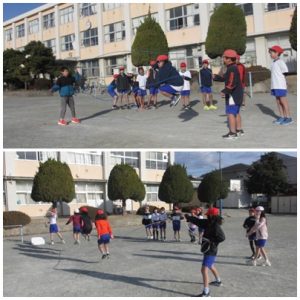 4年生は、クラスで大なわとびに挑戦です。動くなわに入り込んで跳ぶ大なわとびは、タイミングを合わせるのが難しいようです。でも、子どもたちはあきらず何度も何度もチャレンジ。声をかけ合ったり、励まし合ったりしながらとぶ姿がありました。また5年生は短なわとびに挑戦です。タブレット端末でお手本を確認したり、自分のとぶ姿を撮影してフォームを確認したりと上手にとべるように考えながら練習していました。5年生になると二重とびやはやぶさ、そして三重とびなど、高度な技もありますが、自分に合ったとび方で回数に挑戦することもできます。たくさんとぶと体力はグーンとアップします。がんばれ!本地っ子たち‼