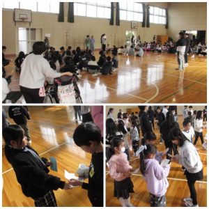 たくさんの名刺を手にする子たちの表情は、みんな笑顔。自然と「ありがとう」の声も聞こえてきました。学年を越えての交流があり、出会った子のことを知るとともにクラスの様子も知ることができる機会となったようです。明日は3組の子たちが「めいし交換ゲーム」を行います。