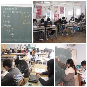 6年生の算数では、6年生のまとめを行っていました。今日は、「整数・分数・小数」についての確認でした。6年生はいよいよまとめの時期。中学校で学ぶ数学は、小学校の算数を土台にして授業は進んでいきます。先生といっしょに一つ一つ確認をしていきます。