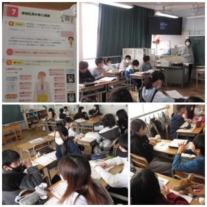 卒業までおよそ1か月となった6年生。授業内容は6年生のまとめで、国語では漢字の50問テストに向けて確認したり、算数では章末問題に取り組んだりと次のステージにつながる学習を進めています。また、保健の授業では、薬物乱用、飲酒、喫煙の危険性を学ぶ時間でした。13歳にこの内容を学ぶということに意味があります。小学校を卒業すると、今まで以上に多くの人と出会い、広い人間社会で生きていくことになり、これらのものと出会うことが増えていきます。その時々の判断は自分で行わなければならなくなる。そのためにも正しい知識を学んでほしいなと思います。