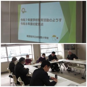 感謝の会後には、第3回学校運営協議会を開きました。今年度最後の会議ということで、令和7年度の学校教育をふり返りとともに、次年度に向けての課題と改善策について皆さんで充実した協議をすることができました。委員の皆さま、ご多用の中、ご出席いただきましてありがとうございました。