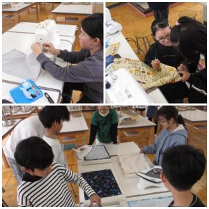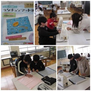 5年生は家庭科の授業です。今はランチョンマットを作っています。布の裁断したり、アイロンをかけたり、ミシンで縫ったりと友だちと一つ一つ確認しながら制作していきます。完成したらお家に持ち帰りますので、ぜひ見てあげてください。