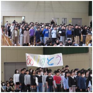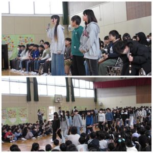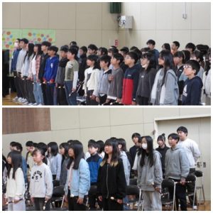 最後は、6年生からお返しに、きれいな音色のリコーダー演奏と心のこもった感動的な合唱が披露されました。6年生たちは、「ありがとうございました」「これからの本地原小学校をお願いします」というメッセージを下級生に伝え、感動の時間は終了。すばらしい6年生を送る会となりました。企画運営した5年生のみなさん、ありがとうございました。