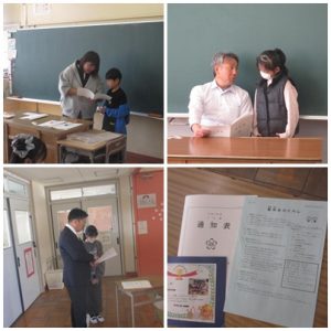 教室に戻ると、担任の先生との時間、そしてお友達との最後の時間です。担任の先生から通知表が手渡され、この一年を一緒にふり返りました。いつまでも友だちや先生との絆は忘れずに、4月には新たなスタートラインに立ち、歩みを進めてほしいなと思います。