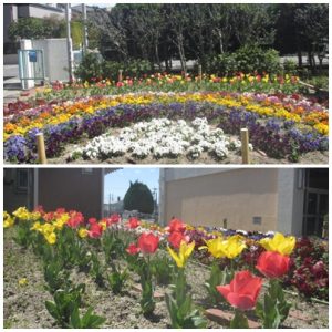 色とりどりの花たちが、新学期に元気な子どもたちと会えるのを、今か今かと待ちわびているようです。学校では現在、皆さんの登校に向けた準備を整えながら、新しい一年のスタートを心待ちにしています。