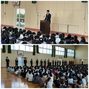 式後には、担任や教科でお世話になる先生の紹介があり、新たな出会いの場となりました。