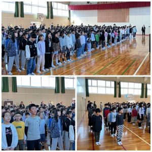 始業式では、校長先生から校訓「明るく笑顔であいさつする子」「正しくよく聞き学ぶ子」「のびのびとなかまとともに成長する子」でいてほしいという願いとともに、とくに大切にしてほしい言葉「かかわり」についてのお話がありました。子どもたちには、話し手の心を感じ取ることができる「まほうの耳」を手に入れて、友だちや地域の方とのかかわりの輪を広げてほしいと思います。