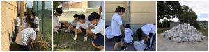 10月1日(水)6時間目、キレイキレイ運動を行いました。健全育成推進会議の地域の方々、保護者の方々にもご協力いただき、刈った草を集めることができました。生徒の皆さんも暑い中、頑張って草集めをしました。300袋程度集まり、草の山ができています。皆様のご協力で学校もすっきりしました。ありがとうございました。