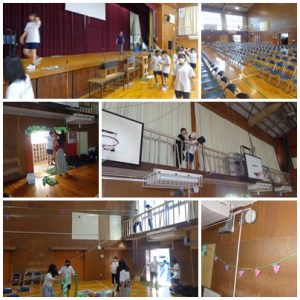 いよいよ明日は待ちに待った文化発表会です。昨日と今日で、会場の準備やリハーサルを行いました。創作の部運営委員会と合唱の部運営委員会の生徒の皆さんを中心にリハーサルも進められ、生徒会役員の皆さんが、会場の飾り付けをしてくれました。会場もよい雰囲気に包まれ、明日の文化発表会が楽しみです。保護者の皆様も、合唱、有志発表、委員会の生徒の司会進行等、子どもたちの活躍をお楽しみください。