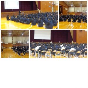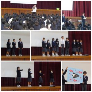 12月22日(月)、各学年で学年集会を行いました。先生方から、生徒の皆さんの2学期頑張ったことや反省等を踏まえ、生活面、学習面、進路、学校行事等について話がありました。2学期は文化発表会や体育大会等学校行事も多く、クラス一致団結し取り組み、一人一人が大きく成長しました。今日、話のあったことを自分事として受け止め、考え、行動に移してほしいと思います。明日は2学期最終日、終業式があります。元気に登校してください。