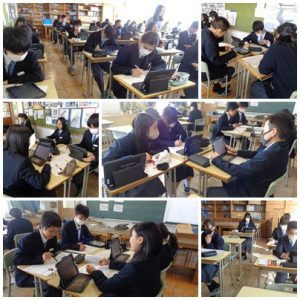 1月28日(水)5時間目に、1年G組で美術の研究授業を行いました。単元は、「自然の形や色を見つめて」で、粘土で和菓子を作成する活動を行っていきます。今日の学習は、アイデアスケッチを互いに鑑賞し、アドバイスをし合います。生徒の皆さんは、インターネットで調べた和菓子に自分なりの工夫を取り入れ、作りたい和菓子のデザインをしていました。お店に並んでいたらついつい買いたくなるような季節感を感じる和菓子がたくさんありました。そして、それぞれ考えたデザインについて、互いによいところや工夫するとよいところを伝え合いました。次回は友達からもらったアドバイスも取り入れながら、早速、制作活動を行っていきます。どんな作品ができるか楽しみです。