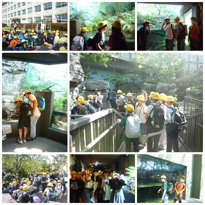 本校は本年度から5年生の林間学校の行き先が郡上八幡自然園に変わりました。1日目、元気に学校を出発してまずは、アクアトト・ぎふに向かいました。5年生は、1学期に理科でメダカの生態について学んでます。その成果か、子どもたちが生き物を見ながら発することばを聞いていると、これまでとは少しちがう視点で水生生物を見ることができていたように思います。それでも、コツメカワウソの展示を見ているときには、あまりのかわいらしさに、児童も「かわいい!!」教員も「かわいい!!」聞こえてくるのはそればかり。その様子がとてもかわいらしかったです。