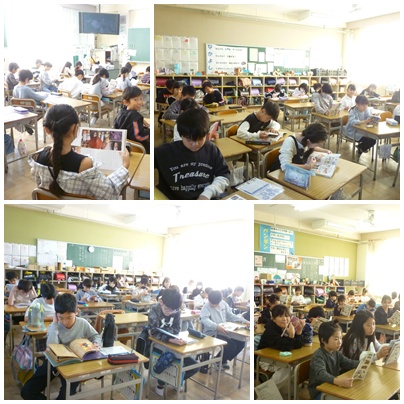 11月4日から14日までの2週間は、もみじ読書週間でした。登校してから朝の会までの時間を読書タイムとして、全校で積極的に読書をしました。読書週間の初日の児童集会では、図書委員会による新しい本の紹介が行われました。