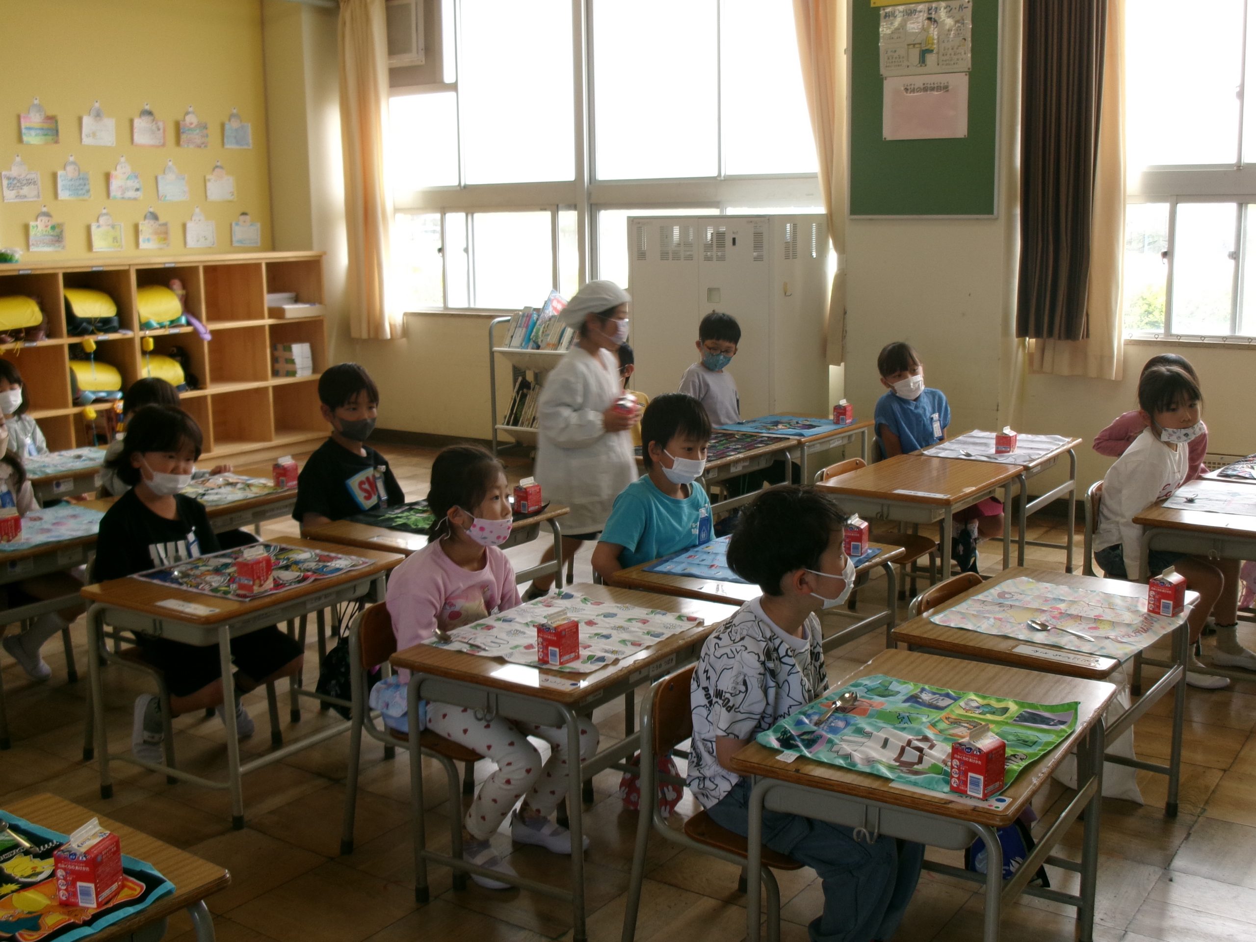1年生 1年生の給食がスタートしました 2026.04.21 by e09mg 0 1年生の給食が始まりました。 給食当番は白衣を着て、配膳の仕方も教わります。 今日の献立は、カレーと入学お祝いクレープでした。 「おいしかった」の声が、たくさん聞かれました。