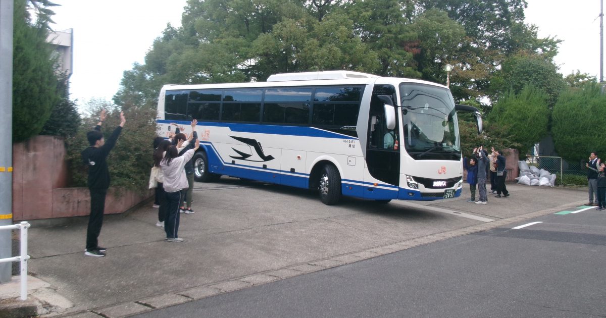 10月23日(木)の早朝、職員や保護者に見送られ、6年生が1泊2日の修学旅行に出発しました。社会科の授業で学習したことを自分の目で確かめて理解を深めるとともに、友達との楽しい思い出をつくってきてほしいと思います。