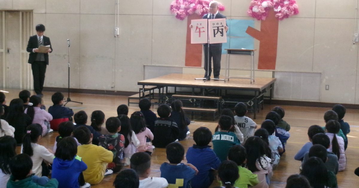 3月24日(火)、1年生から5年生の児童が体育館に集まって修了式を行い、代表児童が校長先生から修了証をいただきました。その後、丙午にちなんだ校長先生の話に続き、生活指導担当と情報教育担当から春休みの生活に向けての話があり […]