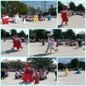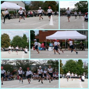 1、2年生の各ペアで協力し合いながらバトン(パンツ)を繋いでいました。途中パンツをうまく履けずに手間どってしまう様子もありましたが、諦めず次のペアに繋げたところにとても感動しました。