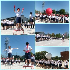 ◎全校競遊[「かがやけ!つきすすめ!渋川っ子!!」大玉送り]