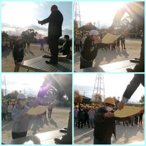 12月1日(月)、児童集会が行われ、生活委員会と美化委員会からお話がありました。生活委員会は、「最近、渋川小学校で見られる気になること」を話し合った結果を劇形式で分かりやすく伝えました。「授業中の私語」と「コソコソ話」についてです。授業中の私語は、集中したい人の妨げになること、コソコソ話はどのような話であっても誤解を招き、嫌な気持ちにすることを伝えました。美化委員会からは、12月8日から始まる美化週間についてお知らせがありました。毎日特に重点的に清掃する場所を放送で伝えるとともに、〇✕クイズも実施します。2学期も残りわずかです。使った場所を綺麗にして、気持ちよく終えられるといいですね。