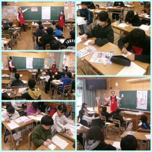 12月3日(水)と4日(木)、庄中郵便局の局長さん他4名の方に来ていただき、5年生と4年生が手紙の書き方の出前授業を受けました。手紙とメールのメリットとデメリットについて考えた後、宛名面の書き方について学びました。どちらの学年も意欲的に授業に参加し、郵便局の方も感心しておられました。手書きの手紙のよさを実感し、年賀状や暑中見舞いなどに取り組んでみるのもよいですね。
