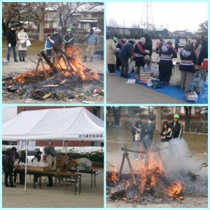 1月12日(月)、渋川校区社協主催による「どんど焼き」が開催されました。「どんど焼き」は、毎年小正月の時期(1月15日頃)に、古い正月飾りやしめ縄、お守り・御札を神社や寺に持ち寄り、焚き上げする日本の伝統行事です。本校の児童も足を運んでくれました。