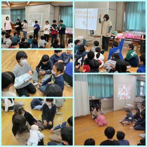 2月6日(金)に理科「人のたんじょう」の一環で、助産師さんを講師に迎えて5年生が特別授業を行いました。授業では、生命の誕生やお母さんの子宮の中での赤ちゃんの育ち方を、体験談と写真や人形を使って説明してくださいました。また、お母さんの子宮に見立てた袋に入って生まれてくる体験も行いました。児童は、助産師さんの話を驚きながらも真剣に聞いており、「生んでくれたお母さんに感謝したい。」「今よりも命を大切にしたい。」と感想を述べていました。この授業を通して、自分の命だけでなく友達の命も大切にできる人になってほしいと思います。