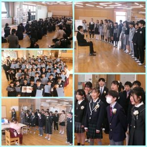 3月19日(木)、6年生の別れを惜しむかのように降り続いた雨も上がり、春の陽気を思わせる暖かさの中で、卒業証書授与式を挙行することができました。1年間最高学年としての立派な行動がさまざまな場面で見られた6年生は、この日も素晴らしい姿を披露してくれました。式の後半には、5年生の送別の歌、6年生の門出の歌が体育館に響き渡り、出席者の心に深く刻まれたことと思います。