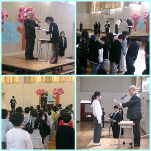 3月24日(火)、1年生から5年生の児童が体育館に集まって修了式を行い、代表児童が校長先生から修了証をいただきました。その後、丙午にちなんだ校長先生の話に続き、生活指導担当と情報教育担当から春休みの生活に向けての話がありました。4月からは1学年進級し、さらに成長した姿をさまざまな場面で見せてくれることを期待しています。保護者の皆様には、1年間の学校教育に対するご理解とご協力をありがとうございました。