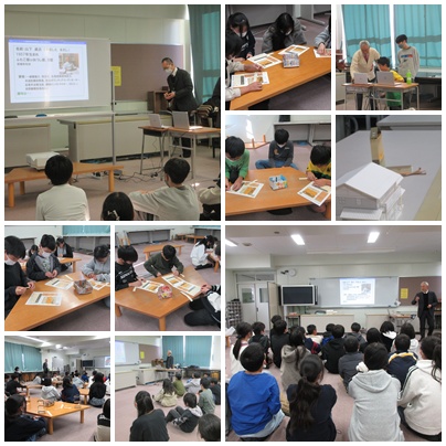 6年生のキャリア教育の授業が続きます。今回は建築士さんの話を聞く出前授業でした。設計の仕事についての話を聞いたり、家の模型作りに挑戦したりしました。城山小の校区が昔は池だったこと、液状化現象のことなどの講義を聴いたり、模型作りを通して地震に強い家づくりについて学びました。「筋交い」の大切さを体験的に学ぶことができました。「家づくりに大切なものは用・強・美だということがわかりました」「地名につく漢字で、その土地が水に深い関係を持つことがわかりました」など、子供たちの振り返りもキャリア教育が進むにつれて、充実した内容になっています。