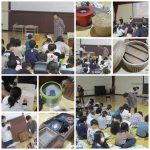 3年生の社会科では、「市の様子と人々のくらしのうつりかわり」という単元で尾張旭市のうつりかわりについて学びます。この日は、昔のくらしについて、昔の市の様子を知る方からお話を聞く出前授業でした。今と昔の地図を並べて、建物の様子や公共施設を比べます。これは何に使われていた道具でしょう?というクイズも出ました。それぞれ予想を立て、結果を聞きます。今では使われてないものや大きさや形を変えて残っているものなどがあり、みんなうなずきながら解説を聞いていました。3年生では年間を通して「尾張旭市」「身近な地域」について調べたり、話し合ったりして学びます。総合的な学習では、そうした社会科で得た知識も活用して「これからの尾張旭市」について提案していきます。学びは様々な教科を越えてつながっていますね。