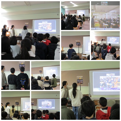6年 中学校とオンラインで外国語の交流をしました 2026.02.03 by e05wr 0 6年生が旭中学校とオンラインで外国語の交流授業をしました。お互いに英語で自己紹介をしたり、質問をしたりしながら交流を図りました。初めのうちは緊張をしていましたが、段々となれてスムーズに話せるようになりました。4クラスとも行いましたが、クラスの個性が出ていて楽しく交流できました。中学生はみんなのお手本となるような、きれいな発音の英語で話していましたね。
