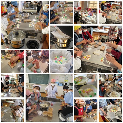 3年生の社会科の話題が続きます。現在、くらしの移り変わりについて学んでいます。「昔の道具について」の出前授業でお世話になった講師さんが今回は「おこしもの」づくりを教えてくださいました。PTAのボランティアさんも協力してくださり、安全に楽しみながら、体験的な活動を行うことができました。「おこしもの」とは、桃の節句でひな人形の前におそなえする郷土料理です。スーパーマーケットや和菓子屋さんの店頭にも並んでいるときがありますね。練った米粉を「おこしもののの型」を使ってかたちづくります。食紅で色をつけて蒸します。「ねんどみたいにやわらかい」「上手に型が取れた」と声が上がります。また、家庭科室には米の蒸されるいい匂いがいっぱいに広がっていました。そのまま食べたり、砂糖醤油で食べたり…とまさに五感をフルに使っていました。