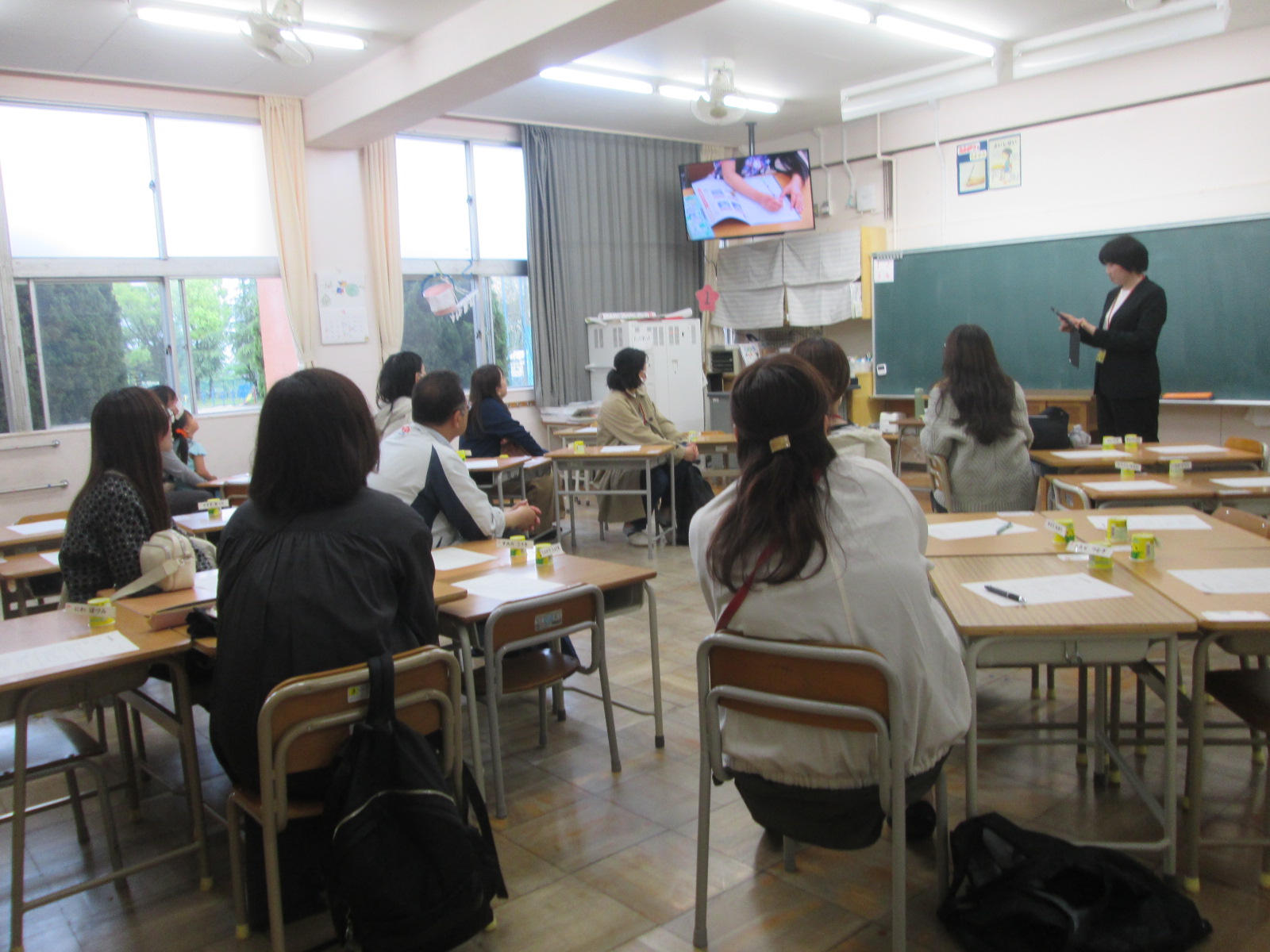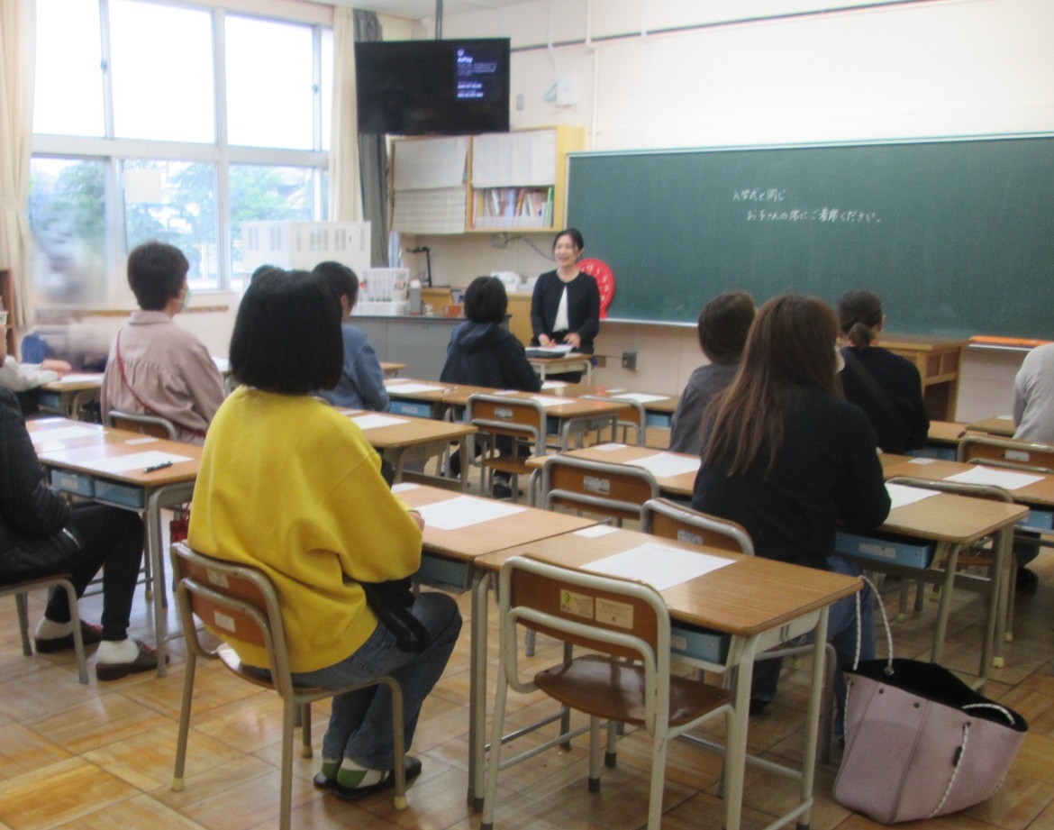 4月23日、1・2年生とひまわりで学級懇談会がありました。年度当初の学級懇談会はそもそも、PTAの委員が主催で「新しいクラスになって、子供たちだけでなく、おうちの方同士顔みしりになりましょう。担任もまじえて学校の様子や家の様子を情報共有しましょう」と目的のもと始まりました。かつては会の進行や話題提供もPTAで行っていました。時代を経てPTA委員の形もかわってきたり、おうちの方の就労状況もかわってきたことから、会の内容や参加人数も変容してきました。今年度は、低学年とひまわり学級を中心に学級懇談会、中・高学年は希望者による個別懇談としました。写真は1年生の懇談会の様子です。和気あいあいと話し合ったり、学校での様子を担任から聞いたり、ご家庭での子供たちの様子を話したりしていました。ご参加ありがとうございました。