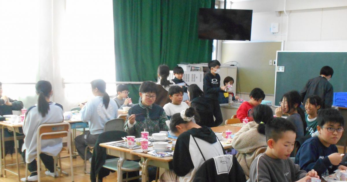 今日の給食は『卒業 お祝い献立』。赤飯、お祝いすまし汁、照り焼きハンバーグ、もやしの赤じそあえ、卒業祝いケーキ、はっこう乳。6年生にとっては、小学校生活最後の給食でした。給食を通して、行事食や郷土料理、地域でとれる食べ物 […]