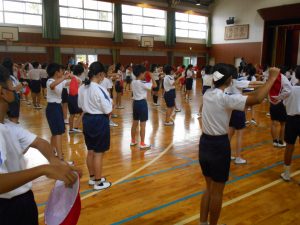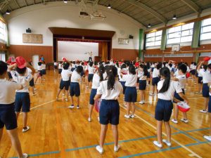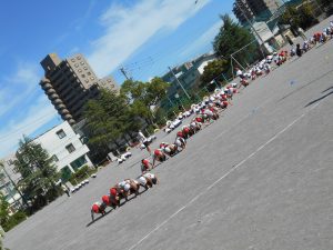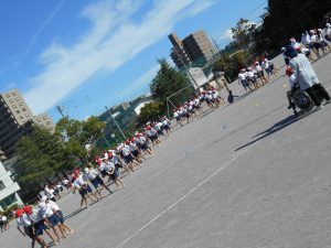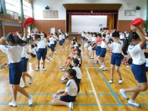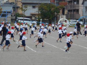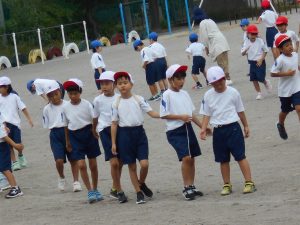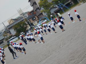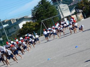 放課にもダンスの練習をする子や、運動場でかけっこの練習をする子。1年生にとっては、小学校初めての運動会、6年生にとっては小学校生活最後の運動会。10月31日(予備日11月6日)に開催される運動会に向けて、本格的に練習が始まりました。体育の授業では、1年生と2年生、3年生と4年生、5年生と6年生、2つ学年が合同で練習に励んでいます。
