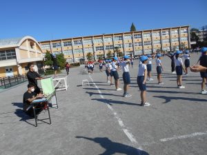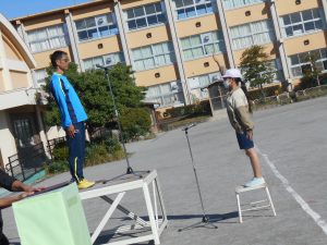 10月31日(金)の運動会本番に向けて、やる気に満ちあふれています。1時間目には、全校児童による開会式や閉会式、ラジオ体操の練習が行われました。また、昼間に行われている赤白青リレー練習も大詰めです。本番さながらの気迫で運動場を走る代表児童の姿があります。運動会でもありがとうの花をたくさん咲かせましょう。