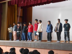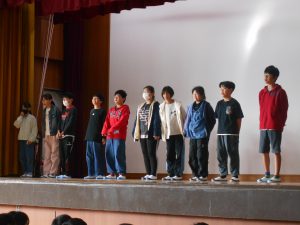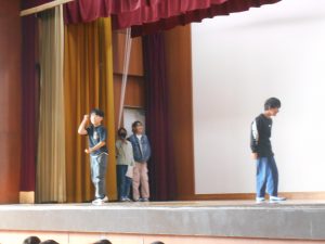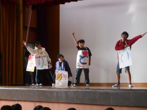 ありがとう貯金箱に『ありがとう』がたくさん貯まりそうです。児童集会で、生活委員会の児童が全校児童に向けて「ありがとう劇」を発表しました。『ありがとう』を伝えると、「ありがとうを言った人も言われた人も幸せな気持ちになる」「ありがとうを伝えあうと場の雰囲気がよくなる」。これからも、ありがとう貯金箱にたくさんの『ありがとう』が貯まり、東栄小学校にありがとうの花がいっぱい咲きますね。