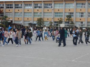 火災避難訓練を実施しました。児童は、「お・は・し・も」のおさない、走らない、しゃべらない、もどらないを守って静かに落ち着いて運動場へ避難できました。全校児童での避難訓練後、6年生児童は「煙道体験」を行いました。火災時の煙の怖さや避難方法を疑似体験しました。今日の訓練で、避難時の基本的な約束事が確認できました。実際に火災が発生したときには、安全に速やかに行動し、自分の命を守りましょう。