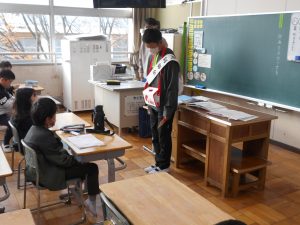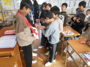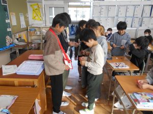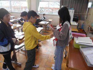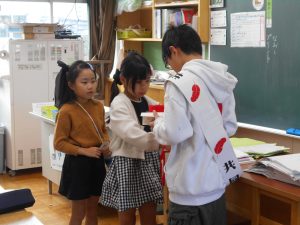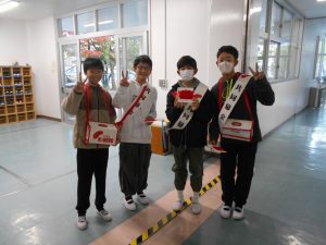 児童会が中心になって赤い羽根共同募金活動を行っています。集められた募金は、尾張旭市では、高齢者へのボランティア給食サービス、民間学童クラブや児童養護施設、障がい者施設への助成金等、地域の社会福祉事業に役立てられます。募金活動を通じて、子どもたちが自分たちにできることで地域における福祉活動に貢献し、尾張旭市のまちの福祉を考えるきっかけになっています。12月3日(水)と5日(金)にも募金活動が行われます。
