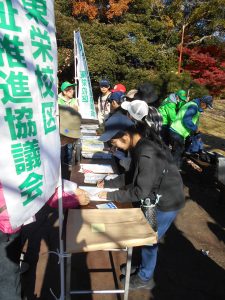 5・6年生合わせて9人の東栄っ子たちが受付を手伝ったり、一緒にウォーキングをしたり、おにぎりを配ったりして大変活躍していました。雲一つない秋空の下、森林公園で行われた東栄校区ふれあいウォーキング大会。ボランティアとして参加した9人が地域の行事に大いに貢献していました。ボランティア以外でも参加していた東栄っ子たちもいて、とても楽しくおしゃべりしながら、紅葉も楽しみながら歩いていました。心身ともにリフレッシュできる素敵な大会でした。東栄校区社会福祉協議会の皆様、子どもたちに活躍の機会を与えていただき、ありがとうございました。そして、積極的に働いてくれた9人のボランティアさんたち、ありがとう。