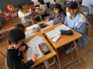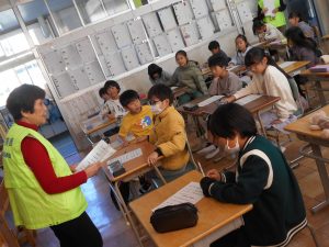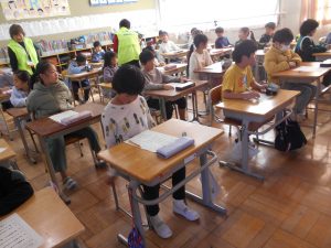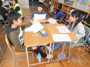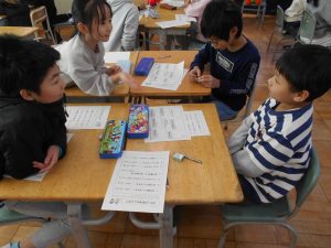 「わたしの好きなことは?」という質問に真剣に考える子どもたち。「・・・わたしの好きな遊びはドッジボール」「好きなスポーツはサッカー」「好きな乗り物は、自転車」・・・。自分の「好き」を考えることで、「自分のよさ」や「自分のらしさ」を発見しました。人権教室を通して、子どもたちは一人ひとりそれぞれ違ってよいこと、自分も友達もとても大切な存在であることを改めて実感していました。