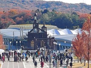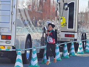 かっこよかったですよ~。晴天の秋空の下、モリコロパークで行われた第18回愛知県市町村対抗駅伝大会で第3走者をつとめた東栄小6年生男子。大観衆が見守る中、力強く颯爽と走っていきました。後から本人に聞いたところ、他チームの2人を抜くこともできたそうです。チーム尾張旭は、この男子と東栄小保護者を含む選手9人が全力を出して一本の襷をつなぎ、見事に30.2kmを走り切りました。選手を支えるコーチの中にも東栄小職員の姿がありました。この東栄小パワーが光るチーム尾張旭、全員精一杯の力を発揮して走り切ることができました。すばらしい、ブラボー!!
