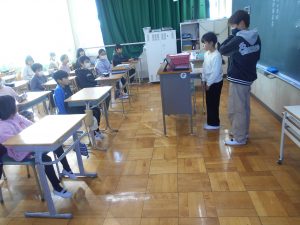 期待に胸を躍らせる子どもたち。「早くやりたいな-」と、楽しみと期待が増していました。12月11日に催される児童会企画「ゲームワールド」の顔合わせ会が行われました。縦割りで編成された異学年の子どもたちと対面し、ゲームワールドを企画運営する代表委員と学級委員によるゲームの説明などを聞きました。当日は、みんなで協力してゲームを楽しみましょう。