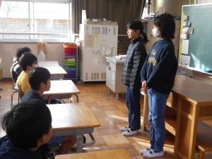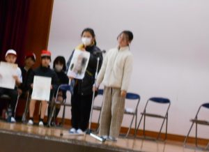 「笑顔で仲良く!」「役員の経験があり、やりがいを感じました!」「元気に登校し、協力し合える学校をつくりたい!」「みんなの声を届けます!」児童会役員選挙に立候補した立候補者が推薦責任者とともに、各クラスへ演説まわりを行いました。2月2日(月)5限目に行われる選挙に向けて、体育館ではリハーサルが行われ、立候補者の意気込みと緊張感が伝わってきました。