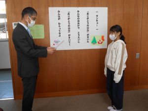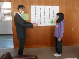 学校ニュース 校長室にて表彰 2026.02.05 by e02mg 0 校長先生から5名の児童に表彰状が手渡されました。表彰されたのは、健康づくりと体力向上に努めて学校保健会より表彰された6年生1名と、読書感想画コンクールにおいて優秀な成績をおさめた4名です。おめでとうございます。