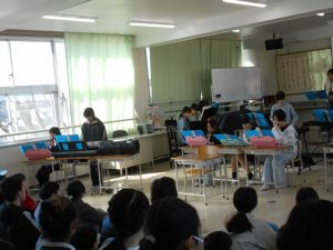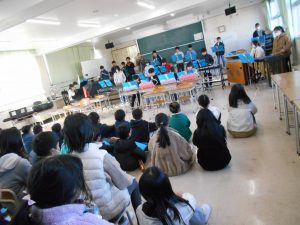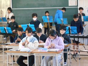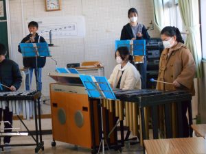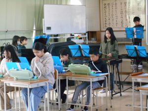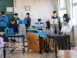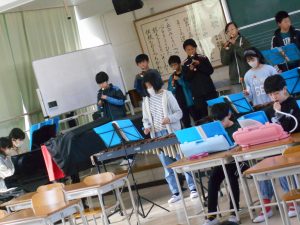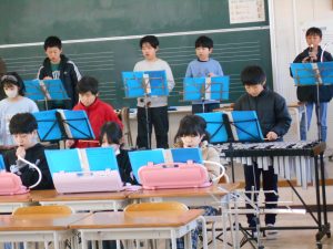 「ルパン三世のテーマ」をオシャレにカッコよく演奏する5年生。慣れている鍵盤ハーモニカやリコーダー、鉄琴に加えて、ヴィブラスラップやボンゴやシンセサイザー、ピアノ等など、様々な楽器で奏でました。心を一つにした演奏は聴いているみんなに感動を与えました。素敵な演奏をありがとうございました。