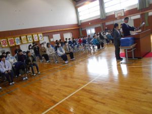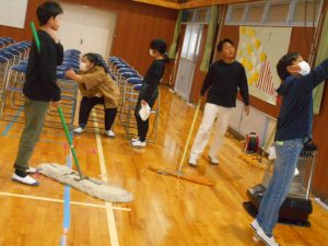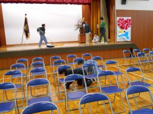 準備は整いました。明日の卒業式に向けて、5年生が準備を一生懸命に手伝いました。卒業する6年生のために、体育館の床掃除や椅子の水拭きやトイレ掃除、6年生教室の飾り付けなどを行いました。昨日の卒業式リハーサルに参加した5年生の姿も、在校生代表としてとても立派な姿でした。