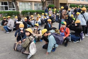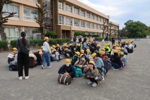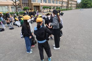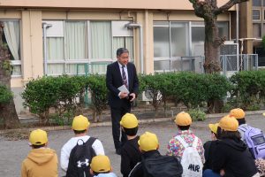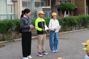 7時15分頃には子どもたちが集まりはじめ、7時半から運動場で出発式を行いました。